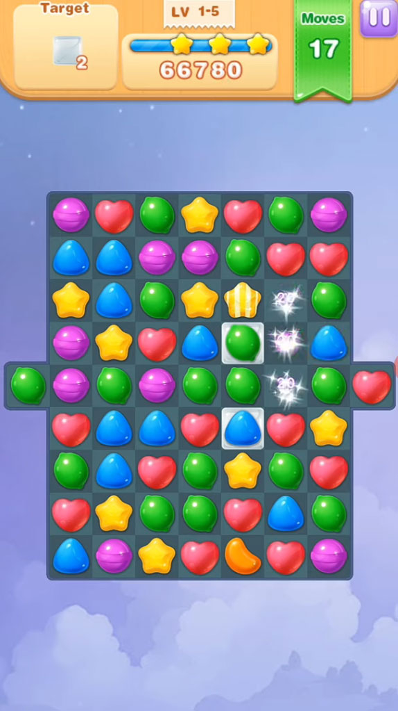 In terms of gameplay, Candy Smash Puzzle is absolutely spot-on. Even though the game doesn’t push the boundaries of the genre to new levels, it still delivers a thoroughly captivating experience by executing the fundamentals of this genre with absolute perfection. The game features a level-based design and each level will require you to complete the assigned objective by matching together three or more objects which, of course, you’ll match by swapping places of adjacent objects. One neat thing about the game is the fact that it supports the square-shaped match that seems to be getting more and more mainstream in this genre and this is great as it gives players more approaches to finish a level.